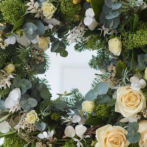 Our biggest winter woodland style wreath, this one is handcrafted by a local florist using fresh flowers and foliage in exquisite wintery colours.
