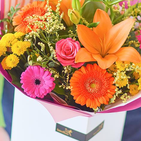 A bouquet of fresh, vividly coloured flowers expertly arranged by a local florist.